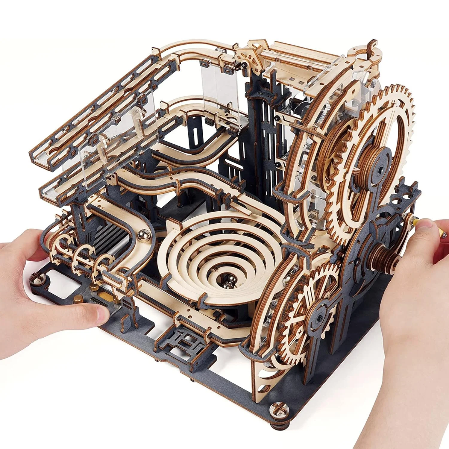 The ROKR 3D Wooden Puzzles for Adults is an engaging mechanical marble run model kit designed for those who love hands-on, intricate DIY projects. This 3D puzzle features finely cut wooden pieces that come together to create a fully functional marble run, complete with ramps, gears, and paths that transport marbles through a mesmerizing journey. Ideal for adults, teens, and hobbyists, this kit not only provides hours of building enjoyment but also becomes a stunning display piece when completed. Perfect for developing patience, problem-solving skills, and as a unique gift for puzzle enthusiasts!