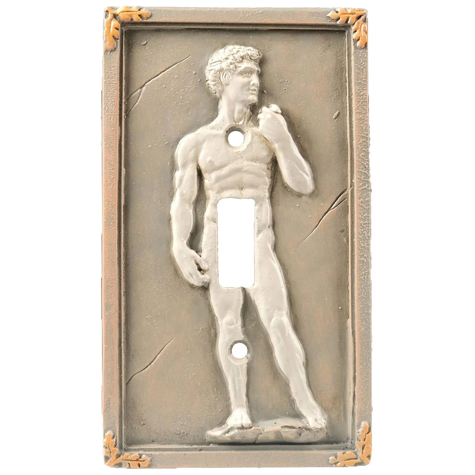 Elevate your light switch into a Renaissance masterpiece with this sculpted polyresin cover featuring Michelangelo’s iconic David in 3D relief. The pose is perfectly positioned so that flipping the toggle practically “turns David on,” bringing humor and art into everyday life. Lightweight, easy to install with included screws, and hand-finished in the USA, it adds fine art flair to bathrooms, guest rooms, or anywhere you want an art-loving conversation piece.