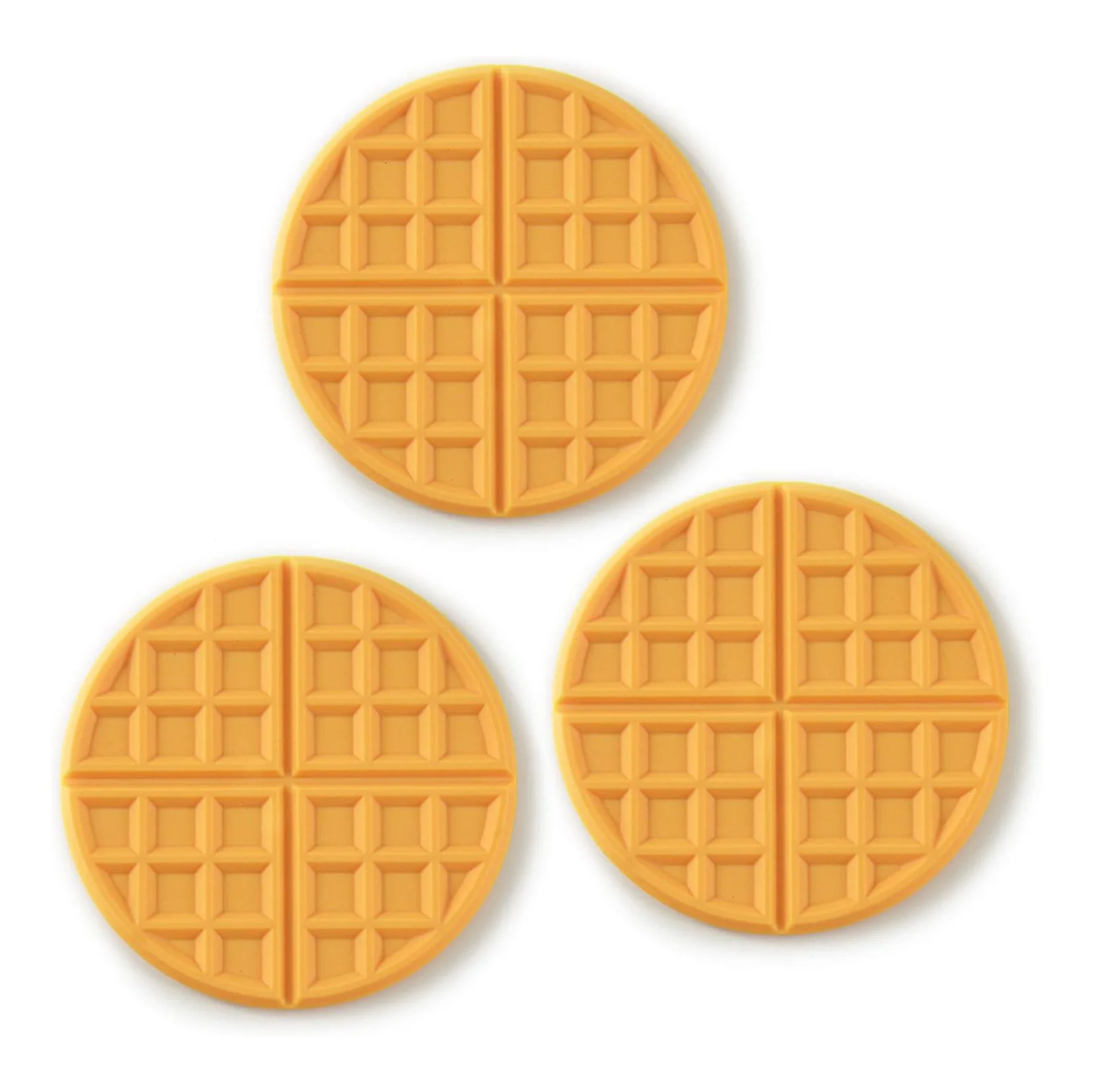 The Silicone Kitchen Trivets Pot Holders set features three round waffle-patterned hot pads in a cheerful yellow color, designed to protect your countertops and dining surfaces from heat damage. These trivets are made from high-quality, food-grade silicone, ensuring they are heat-resistant up to 450°F (232°C) while being durable and easy to clean. Their non-slip surface provides a secure grip for pots and pans, preventing accidental slips or spills. Lightweight and flexible, these trivets are perfect for everyday use in the kitchen or dining room. Their vibrant yellow hue adds a pop of color, making them not just functional but also a stylish addition to your kitchen accessories. Ideal for cooking, baking, or serving hot dishes, this set is a must-have for any home chef!