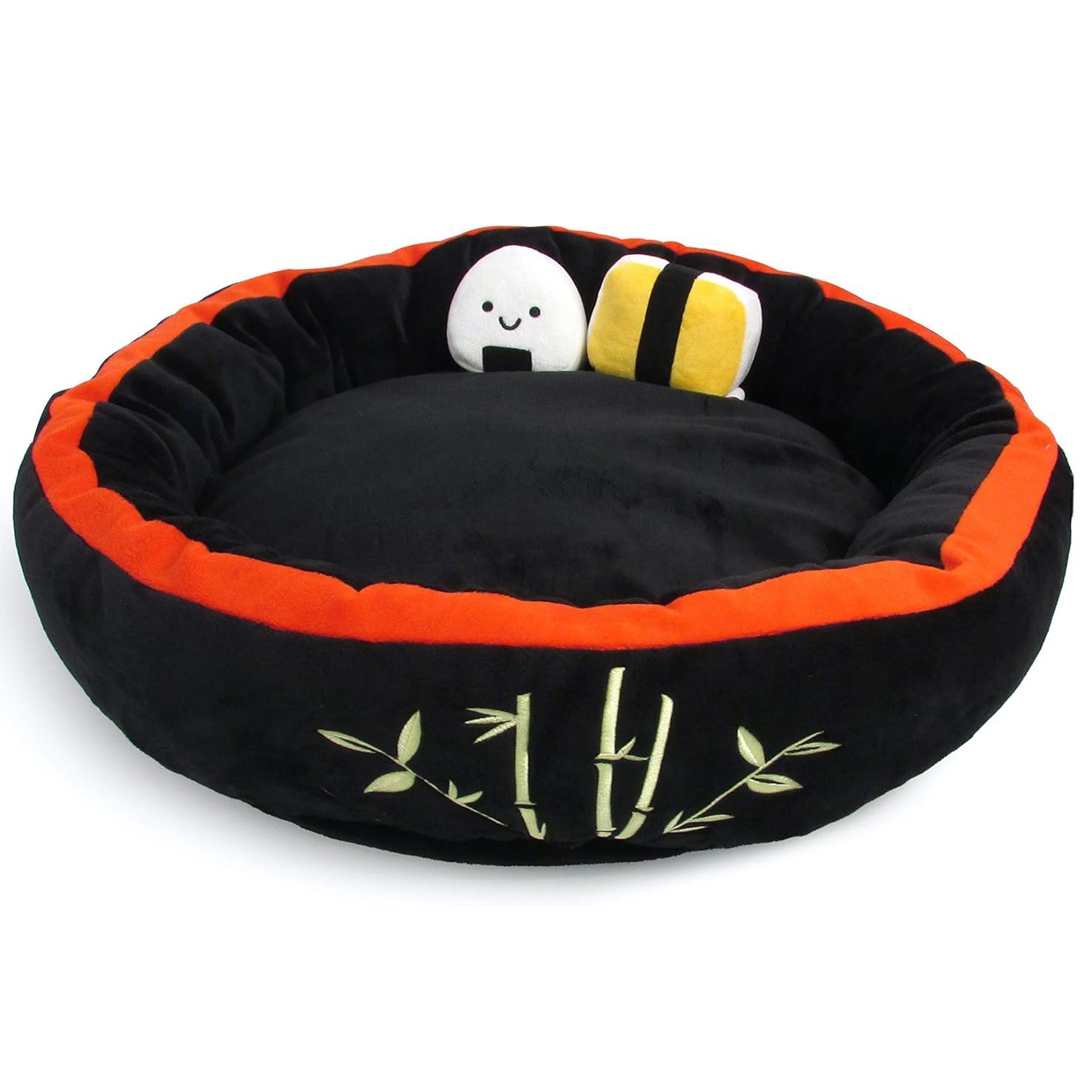 Roll into relaxation with this sushi-inspired pet bed featuring a plush rice ball and tamago sushi crinkle toys. The cozy, machine-washable design is perfect for small cats and dogs up to 15 lbs. Ideal for pets who love to curl up in comfort.