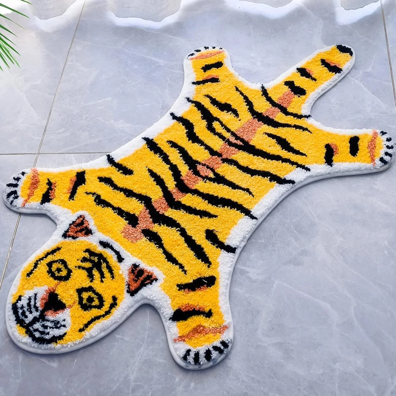 Step into the wild side with this plush, tiger-shaped bath mat in soft pink. Made from ultra-absorbent microfiber and backed with non-slip TPR, it soaks up splash while adding fierce fun to your bathroom or bedroom. Perfect for pet-loving homes, kids’ spaces, or anyone craving a stylish roar underfoot.