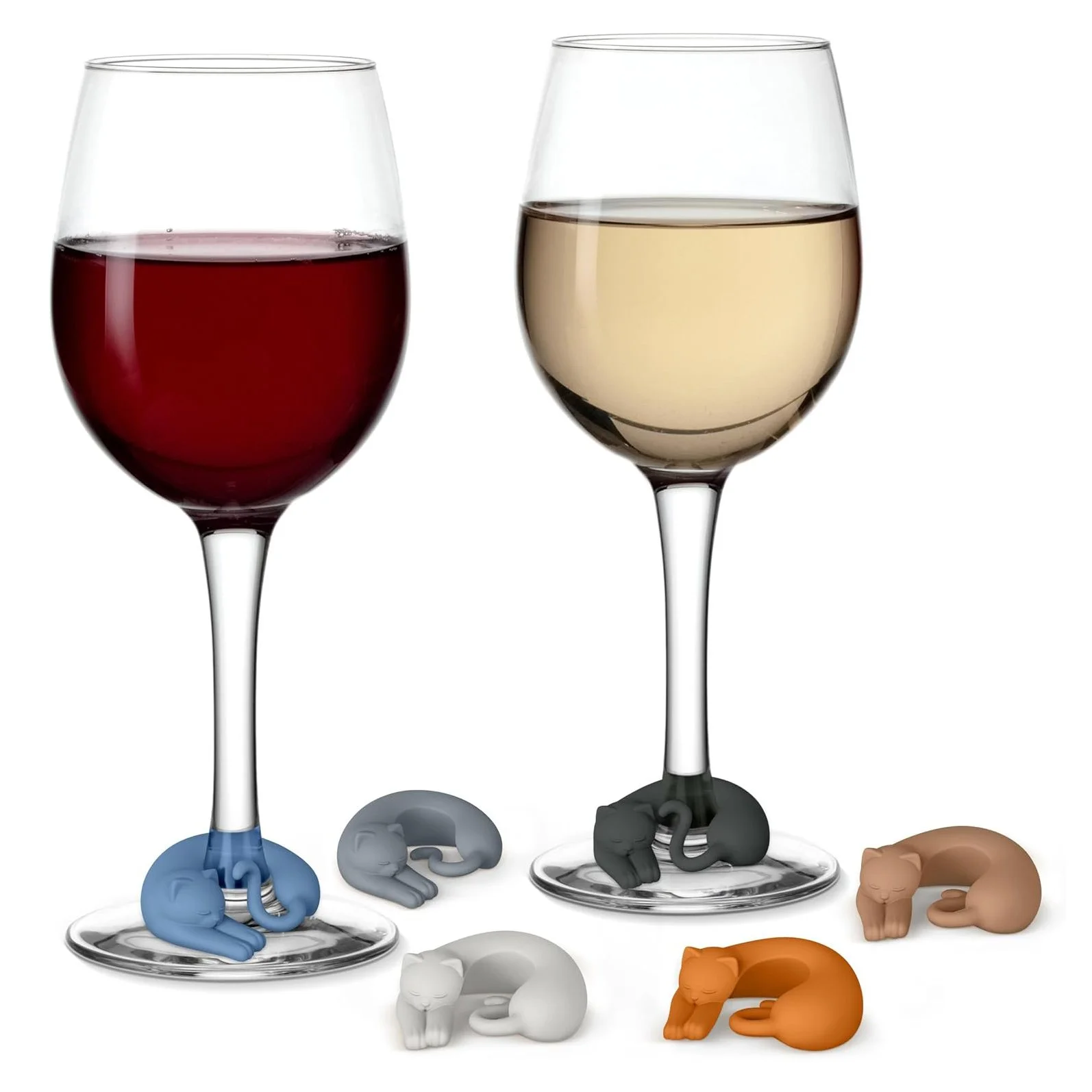 Add a touch of feline flair to your next gathering with these adorable kitty-shaped wine glass markers. Crafted from flexible silicone, each marker wraps snugly around your glass stem, ensuring you never lose track of your drink again. With six vibrant colors to choose from, these purrfect companions are both functional and fun, making them an ideal gift for cat lovers and wine enthusiasts alike.