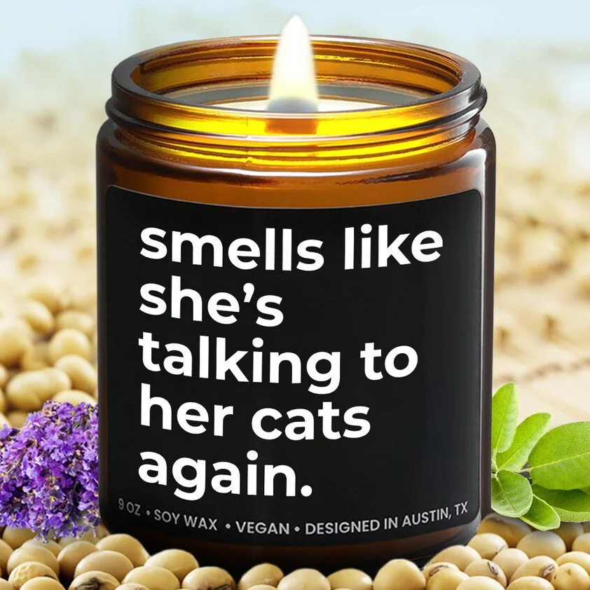 This wood-wick candle says what every cat parent knows: talking to your cat is self-care. With soothing lavender and sage, it sets the vibe for cozy nights filled with meows and meaningful stares. The purrfect gift for feline fanatics who speak fluent “cat.”