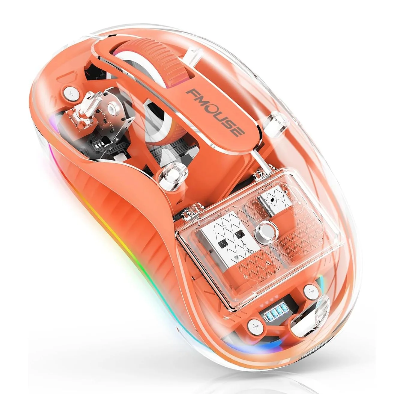 Sleek, see-through, and seriously stylish—this orange transparent mouse is a tech-forward statement piece with LED flair and smooth dual-mode performance.