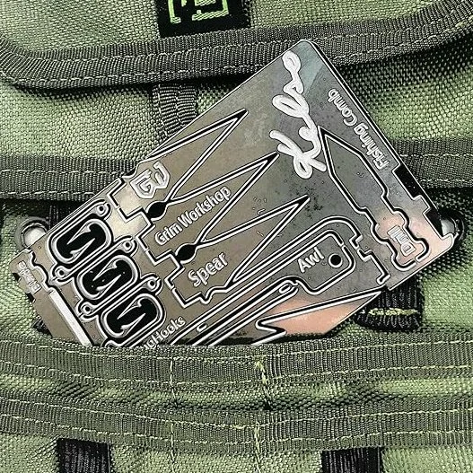 Turn your wallet into a high-utility survival kit with this credit-card-sized multi-tool. Designed in collaboration with survival expert Kelso, this Grim Workshop signature card features a specialized array of detaching tools including fishing hooks, snare locks, a saw blade, and an awl. Crafted from hardened 301 stainless steel, it utilizes a unique "tool retention" system that allows you to remove a tool for use and then snap it back into place for future carry. It is the ultimate EDC (Everyday Carry) asset for the minimalist who wants the peace of mind of a full tackle box and tool kit that fits snuggly in their wallet.