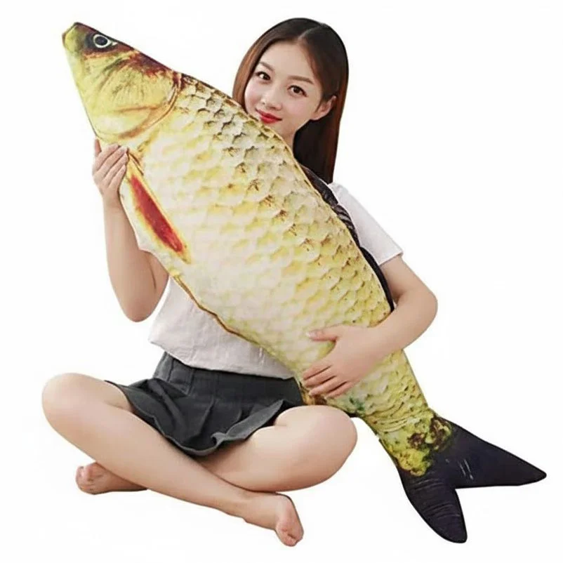 Upgrade your lounge game with this massive, hyper-realistic 31-inch Carp Plush Pillow. Featuring high-definition 3D printing that captures every scale and fin detail, this soft cushion is stuffed with premium cotton for a huggable, supportive feel. It serves as a hilarious decorative accent for a lake house, a comfortable backrest for the couch, or a quirky stuffed animal for kids. Whether you're using it as a body pillow or a prank gift for your favorite angler, this "giant catch" is a low-maintenance way to bring the spirit of the fishing indoors.