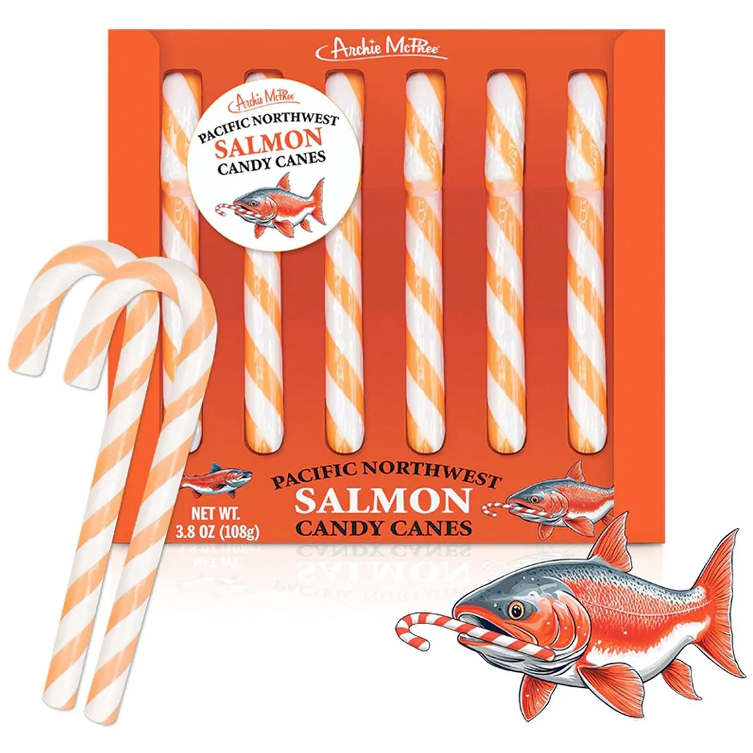 Cast a line for the most unexpected treat in your pantry with these 5.25-inch Salmon Candy Canes. These pink-and-white striped canes are a true test for any adventurous palate. While they look like a classic confection, each lick delivers a "fresh-caught" flavor that belongs more on a bagel than in a candy bowl. Whether you’re looking to prank a fellow fisherman or simply want a conversation starter that’s truly "off the hook," this set of six individually wrapped canes is guaranteed to make waves.