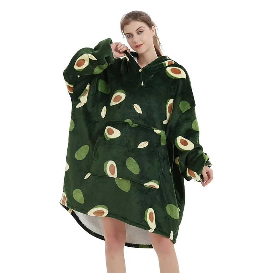 Wrap yourself in ripe comfort with this ultra-plush avocado-themed wearable blanket. Lined with soft Sherpa fleece and styled like your favorite cozy hoodie, it’s the perfect gift for anyone who likes their comfort extra and their loungewear deliciously fun. Great for chilly mornings, movie nights, or Christmas gifting.