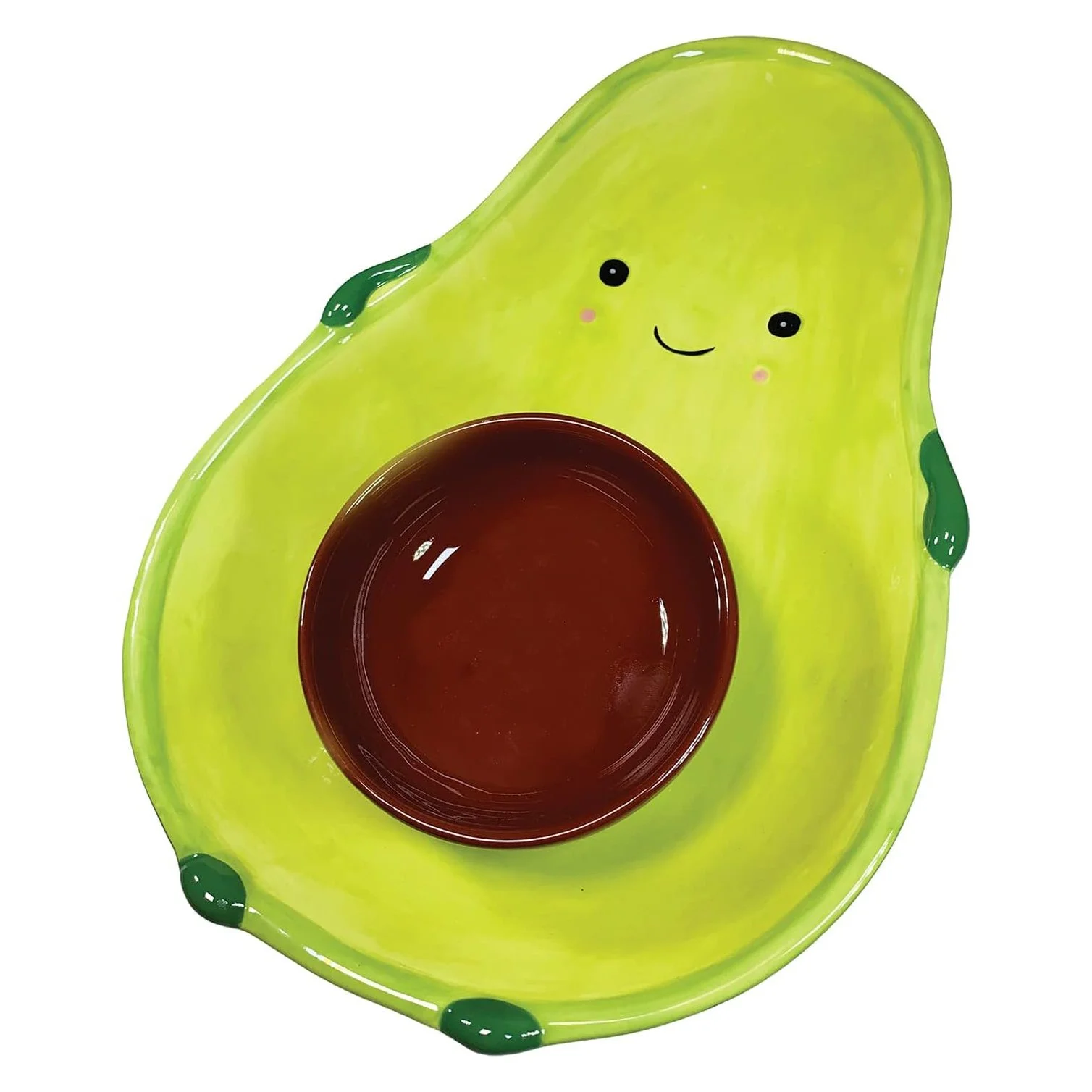 Serve up style and snacks with this avocado-inspired chip platter and dip bowl combo. The playful green “guac” tray and nested brown “pit” dish make it easy to dip, share, and conversation-start at any gathering—perfect for parties, movie nights, or tabletop flair. Made of durable ceramic/dolomite, it’s both functional and fun.
